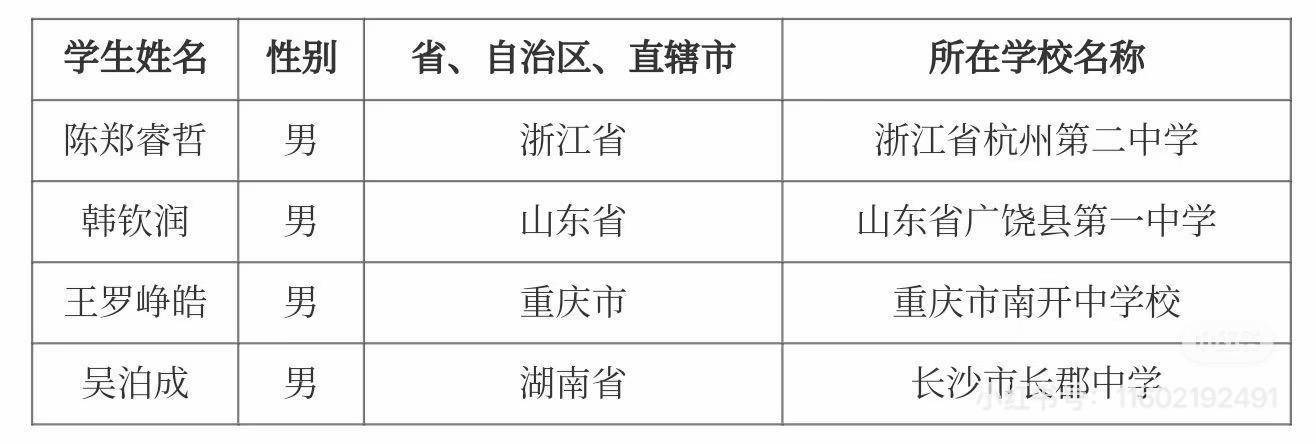 第58届国际化学奥林匹克中国代表队选手名单