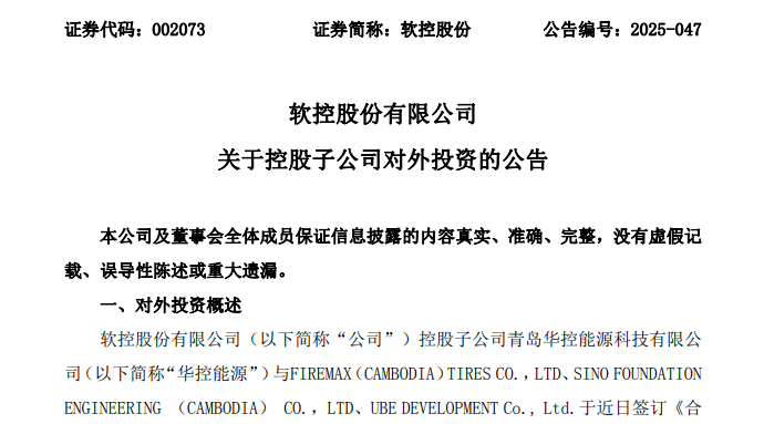 软控股份表示,此次投资,有利于满足海外市场能源需求,增强企业可持续发展能力。